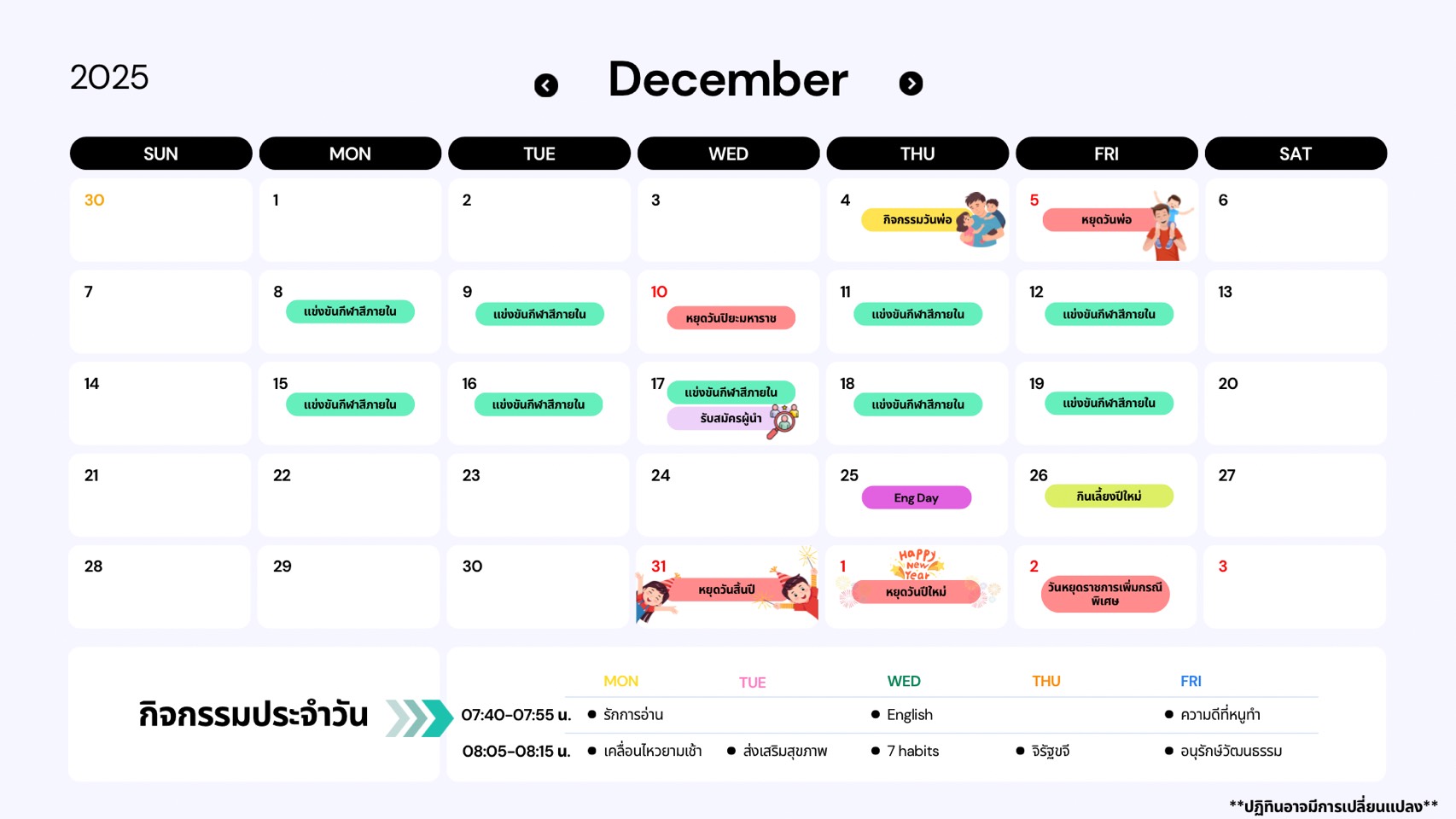 ปฏิทินกิจกรรมประจำเดือน ปีการศึกษา 2568
